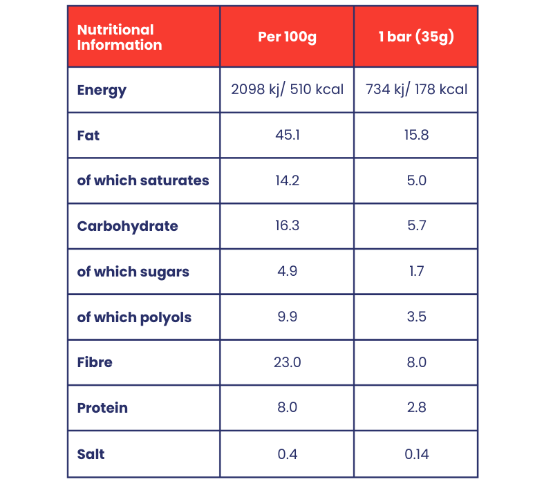 Packed with large crunchy pecans, roasted hazelnuts and a touch of cocoa, this Keto-friendly nut bar delivers a rich chocolaty flavour with a satisfying crunch. Low in sugar and enriched with 9 added vitamins, it’s filled with healthy fats and fibre to keep you energised throughout the day. Fully plant-based and made from natural ingredients, it’s the perfect low-carb snack you can truly see — and taste.